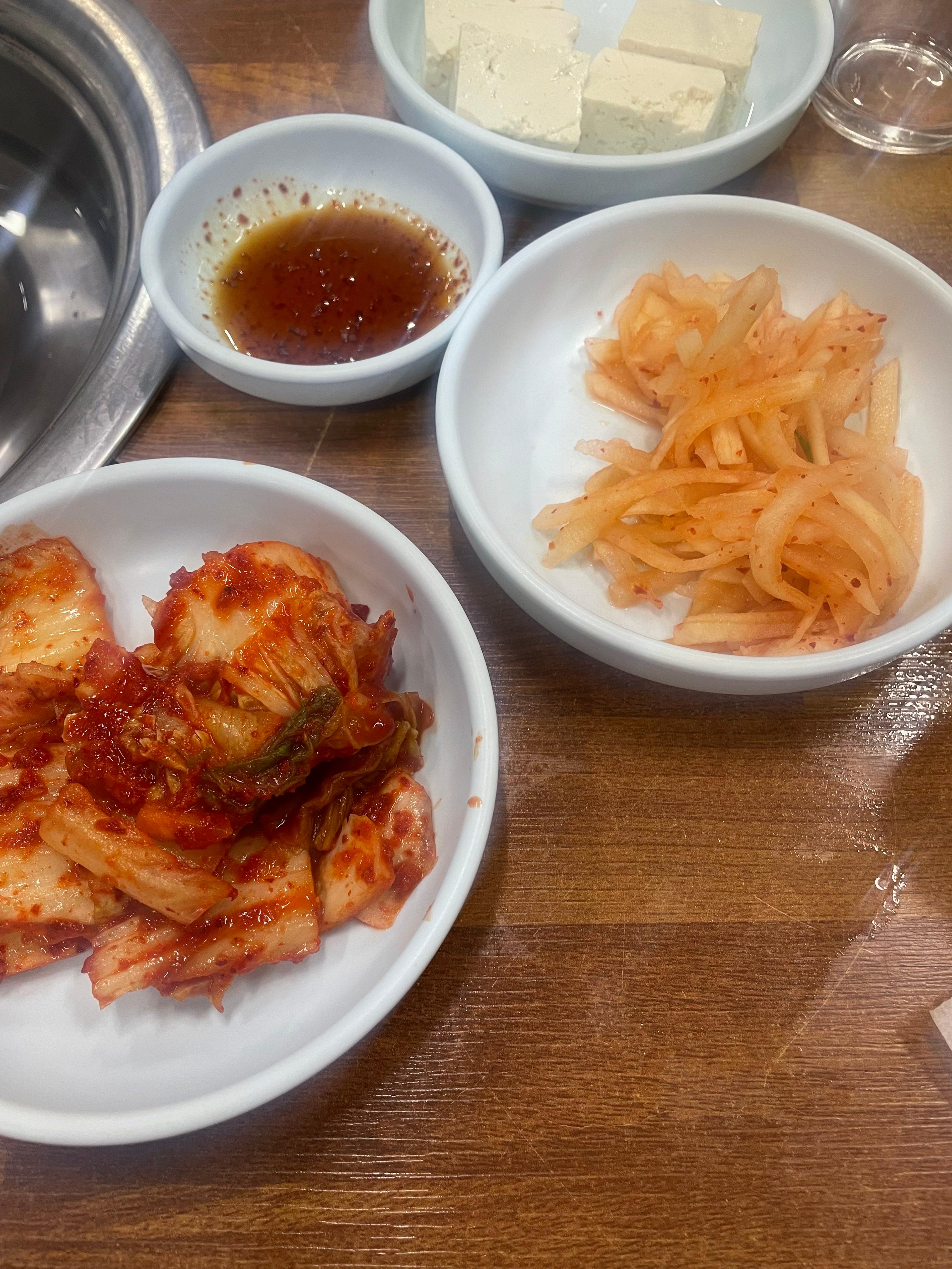 주문하면 불과함께 기본 반찬들 나오고